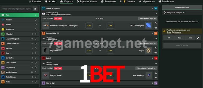 O 1bet oferece uma grande seleção de opções de apostas em e-sports com probabilidades competitivas